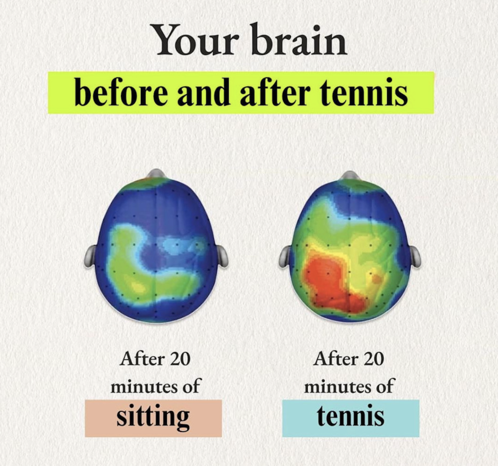 ๐ฉโ๐ฌ Researchers scanned brain activity after 20 minutes of sitting vs. playing tennis. Sitting brains looked like they were buffering. Tennis brains? Lit up like Centre Court under the lights.
